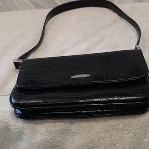 Black Jones of New York faux leather purse short shoulder strap.