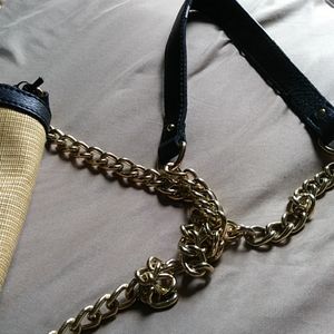 Tweed and leather Emma Fox small handbag. With chain handle with a touch of leather.