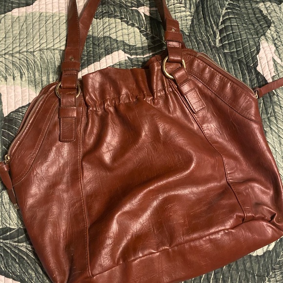 Target pleather brown purse with gold accents on zipper. Has some small knicks but super cute!