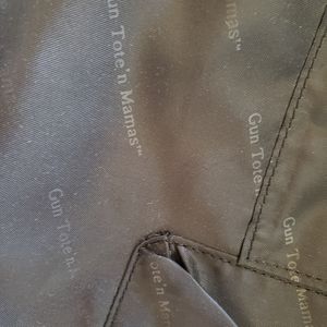 100% black leather Gun Toten Mamas purse. Adjustable/removable pistol holster. Used once. Measures 10.5 inches tall by 10 inches wide. Adjustable/removable strap. Carried only a few times.