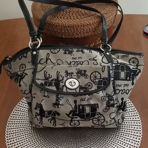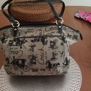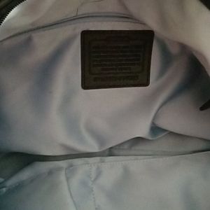 Used Coach bag but still in good shape.Compartments on inside. Blue interior