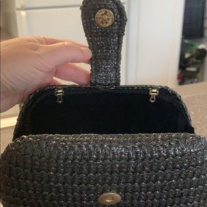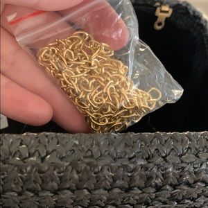 Black Woven small bag with gold chain strap. Can be used with chain or without as a clutch.