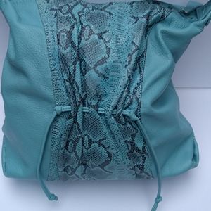 Turquoise blue purse with the beautiful design in the front pocket in the back. Inside pocket also with a slot to hold your pins and a money clip.
