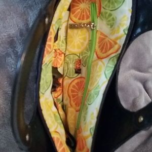 Very cute black handbag. Pockets inside and out. Colorful inside.