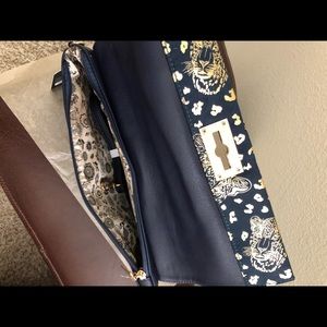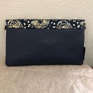 Beautiful brand new stylish blue with a touch of gold purse. This beautiful piece of accessory can be used as a clutch or a crossover handbag. This can be an after 5 or casual wear... thanks for checking out the closet... have a blessed one!!