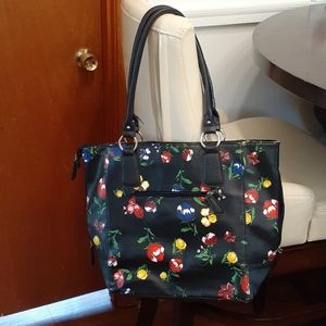 Large black purse with beautiful flowers accent