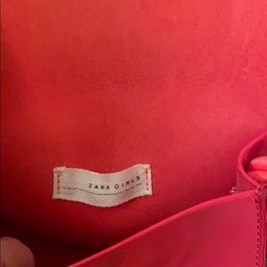 This pink purse from Zara has been used multiple times it is not in the best quality. there is a little mark on the purse but overall the rest of the purse is good.