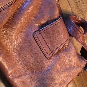 Banana Republic shoulder bag..5” wide, 10” deep, 12 inches across..nice leather