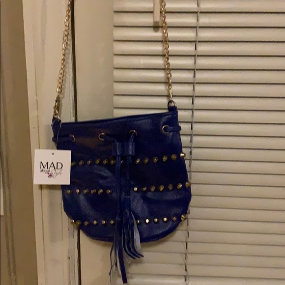 Really cute small navy blue purse with gold bullet like design.