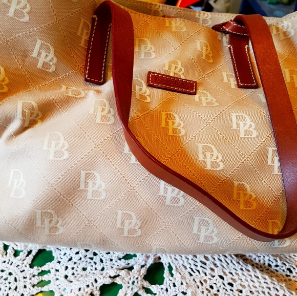 Beige and brown Dooney and Bourke Purse. Lots of storage space. Clean inside and out. Smoke free home.