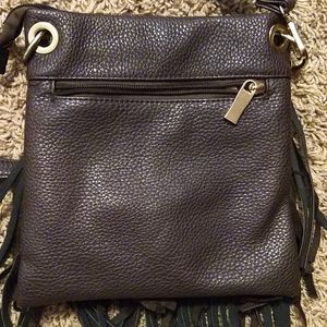 Textured fringe purse with gold and crystal details, great condition, lightly used!