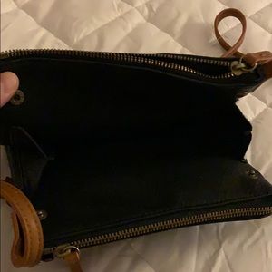 Street level black purse. 3 compartments with removable wallet. Never used. Adjustable straps
