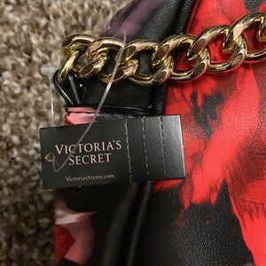 Brand new black Victoria secret purse with red and pink flowers, gold chain