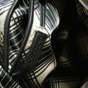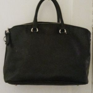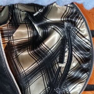 Black. Lots of departments on the inside on both sides. And lots of room and space on the inside. It's new. No tired or nothing wrong with it.