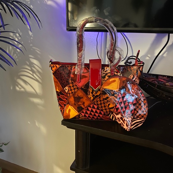 Multicolored handbag with matching wallet