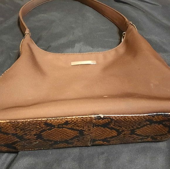 Medium over the shoulder bag trimmed in snakeskin print on both sides and underneath