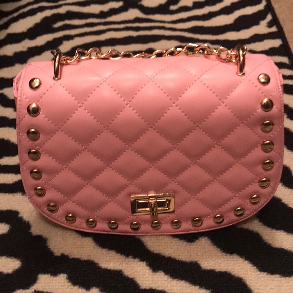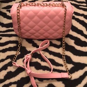 Pink purse with gold chain strap