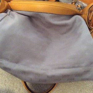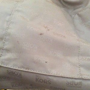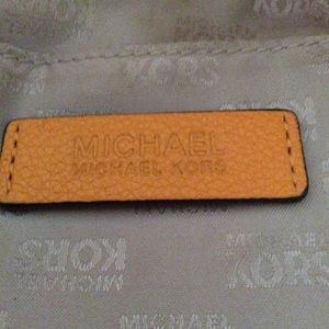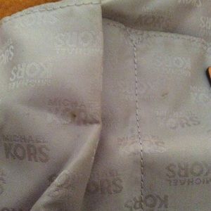 Michael Kors leather tote purse comes with strap, so you can use it as a shoulder purse or carry on your arm. The purse is 14 1/2 inches wide & 9 inches tall. It has 3 compartments with 2 large zipper pouches & 4 small pockets. There a couple of small pin stains inside, which is shown in a couple of pictures.