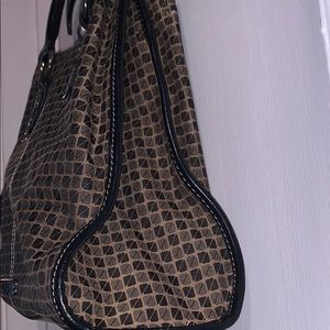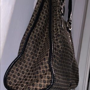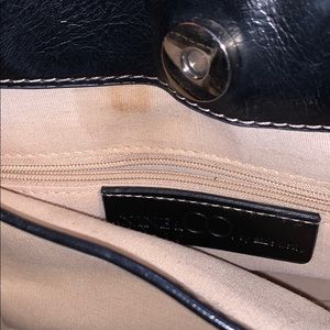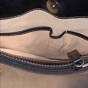 10x 13 inches long with three compartments, two pockets for cell phone and one for pen. Middle compartment with zipper. Magnetic snap closure. Good condition, a small eater stain by snap closure inside. Make offer.
