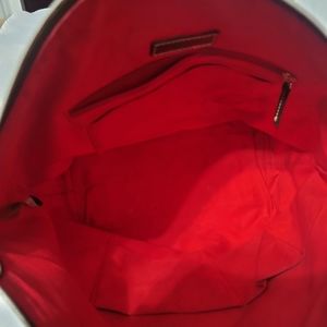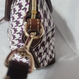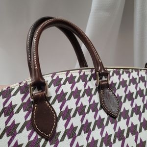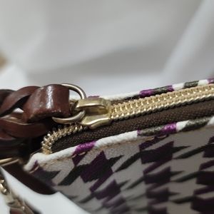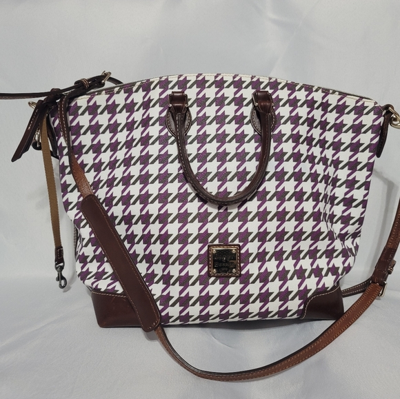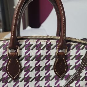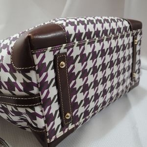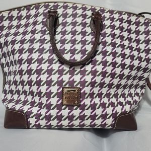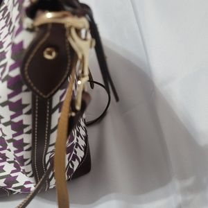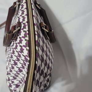 This purse is in very good condition. Looks like new. Very clean inside and outside. Zipper runs so smooth and shiny as well as the hardwares. Canvas is in great shape and the pattern is what really makes this purse very attractive. Its color is a shade of purple, dark gray and white. No marks on the leather and straps. Just want to get rid of some of the purses that I no longer use size wise. If you love carrying big purses, then this one is exactly what you need as it has a lot of room.