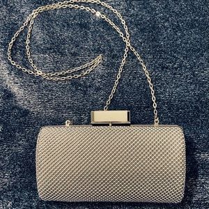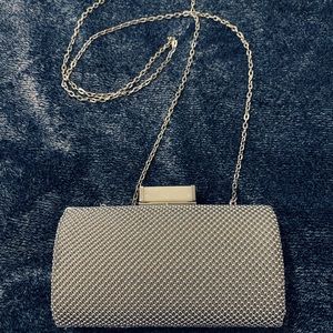 •Drop in silver chain shoulder strap.