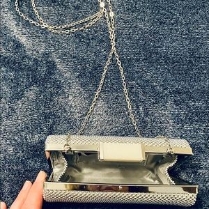 Elegant Silver Aluminum Mesh Clutch.