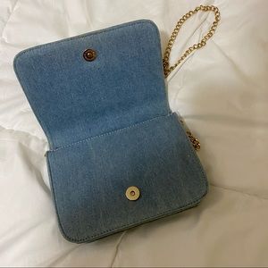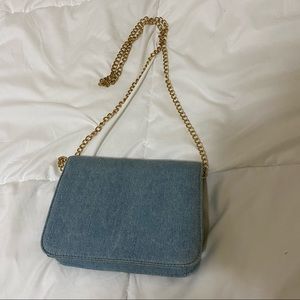 Denim purse with fun patches. Detachable gold chain. Only worn a couple of times