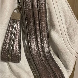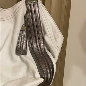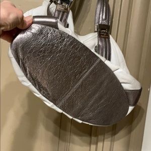 White and silver leather, clean, looks like new, beautiful hardware, shoulder bag, soft leather