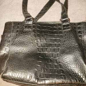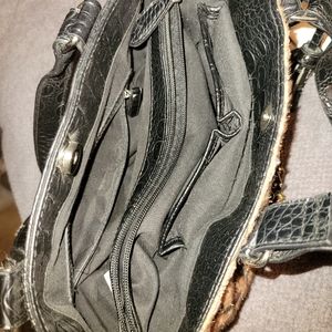 Fake leather purse with fake leopard fur front. Roomy inside with 2 small side pocket and 2 compartments seperated by zip center