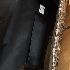 FAUX animal print clutch bag. Magnetic snap closure. Chain strap so can worn crossbody or shoulder. 10 inches long 5 inches tall