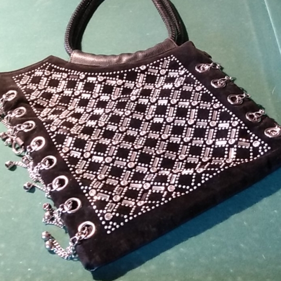 Black leather stones on front