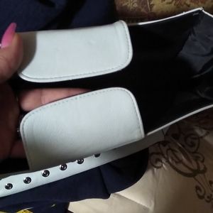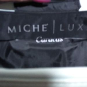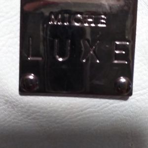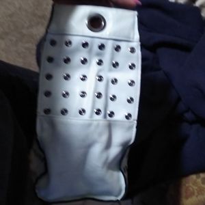 It's lite baby blue Miche luxe vintage bag I used as clutch it has metal grommets on top and sides 2 functional zipper pockets on front 2 functional side pockets great for cell phone 2 magnetic flaps that hold top closed...missing strap but I have dozens were I can find one to match but works really great as a clutch bag