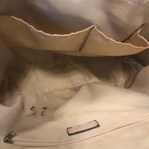 This purse is from Dillard’s I’m unsure of what the brand is. It does have some stains on the inside of the purse that might can be removed