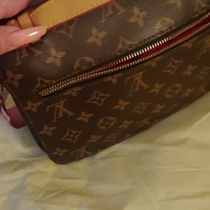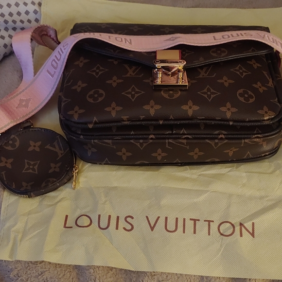 Logo bag.very cute I got this for my young child who wanted a loui bag like mom.she carry the bag one time an put in closet. lots of room 3 pockets inside one zip pocket outside coin bag attached can be removed dust bag included. Very cute #knockoffbag