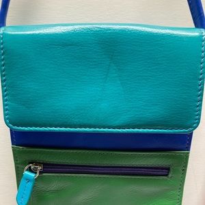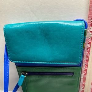 Really lovely cross body bag. Real leather. RFID blocking. LOTS of pockets and slots. Holds a lot for a small bag.
