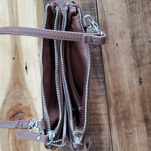 Kenneth Cole Reaction crossbows purse. New with tags. Brown. 2 zippered sections and one interior zip pocket. Excellent condition!