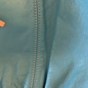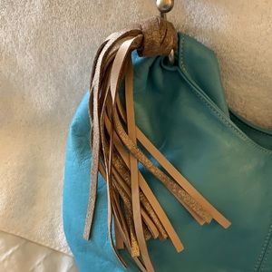 Laudi Vidni bright soft blue leather shoulder bag with dark blue strap