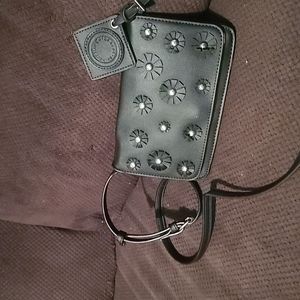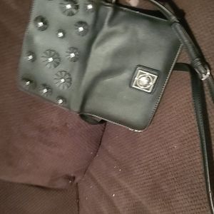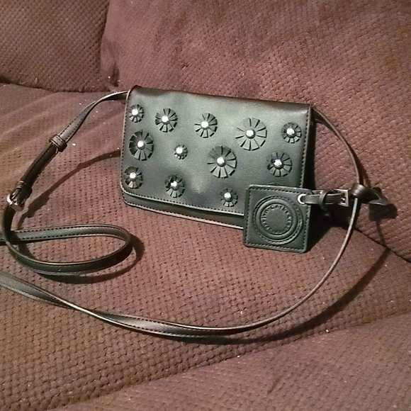 Black shoulder bag cute designs on the front, make a good evening bag for a night out on the town with your better half.