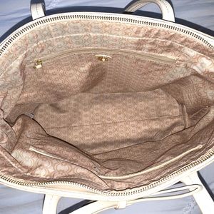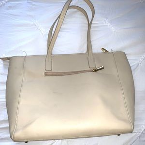 Shoulder purse. Cream in color. A few marks on the front and back of bag but they may be able to be cleaned