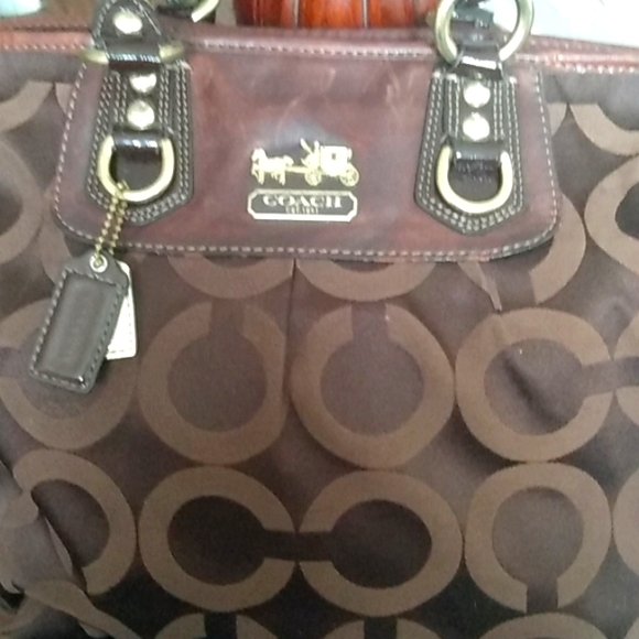 it's a medium sized brown Coach bag barely used