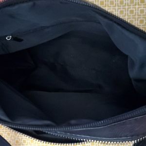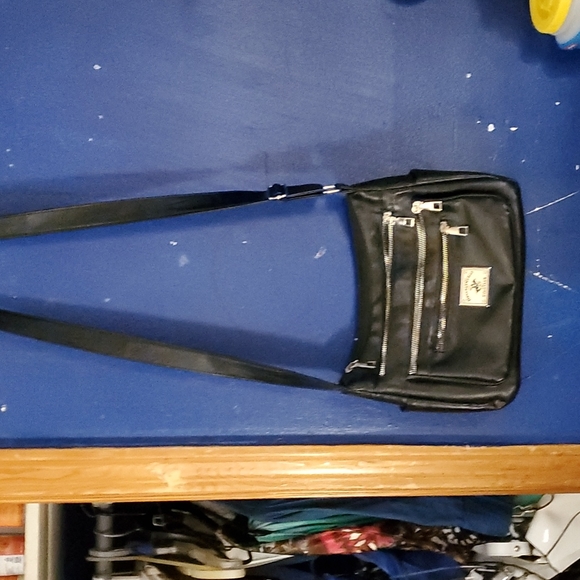 Black Crossbody Purse with 3 outside zipper pockets and 1 inside zipper pocket , pocket on each side. Adjustable straps