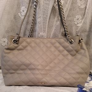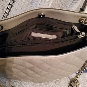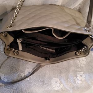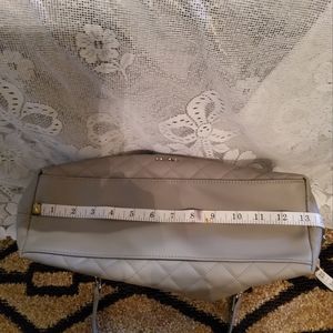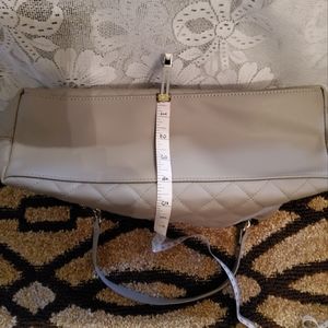 Pre-owned in good condition. Shoulder Bag. Double compartments with zippered middle section, 2 slot pockets in one compartment, and a zipper pocket on the opposite side. 9" L X 13" W X 4" D. See more photos for measurements. Smoke-free home...