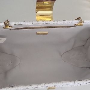 White Vanessa purse with burnt red clasp. Inside there are two small pockets. This purse has been used once.