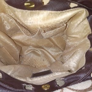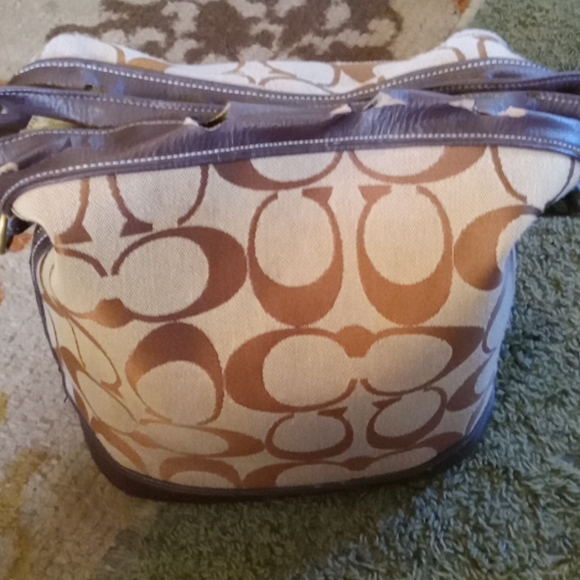 its a coach purse got a lot of pokets in it and the real stamp is inside of it thanks