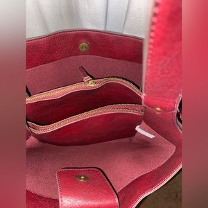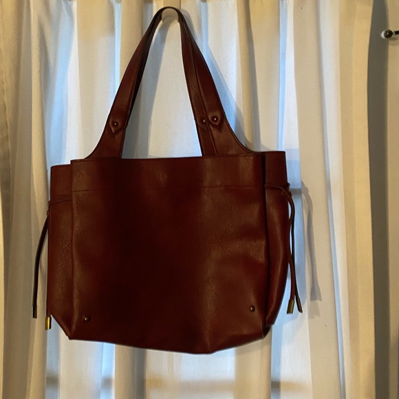 NWOT Gorgeous burgundy purse. Large with lots of pockets. Gold-tone hardware and tassle details.