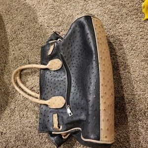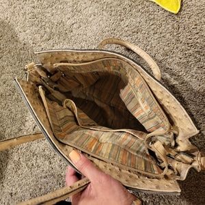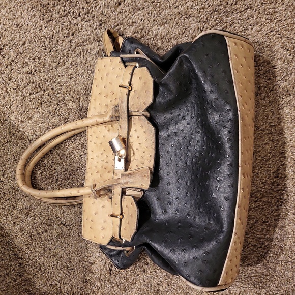 black and beige ostrich print purse multi pocket lock, needs cleaned up. Super cute and classy goes with anything.Light brownish USED