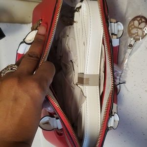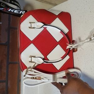 Brand new red and white purse with long strap beautiful