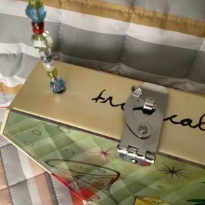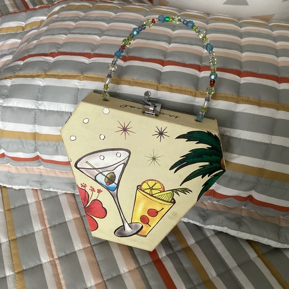 Unique fun purse. Clear front with tropical features. Beaded handle and interlocking clasp.