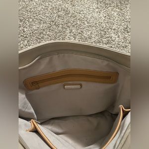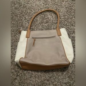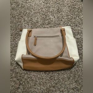 Brown and tan handbag. Brand new never used. No tears or rips and all zippers work great!