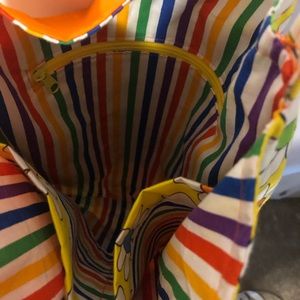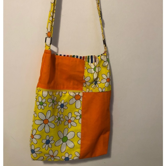 up cycled Vintage fabric, great book, bag, or anything bag. Super cute. 15 inches long 11 inches wide,gun metal hardware. there are four pockets to our zippered.